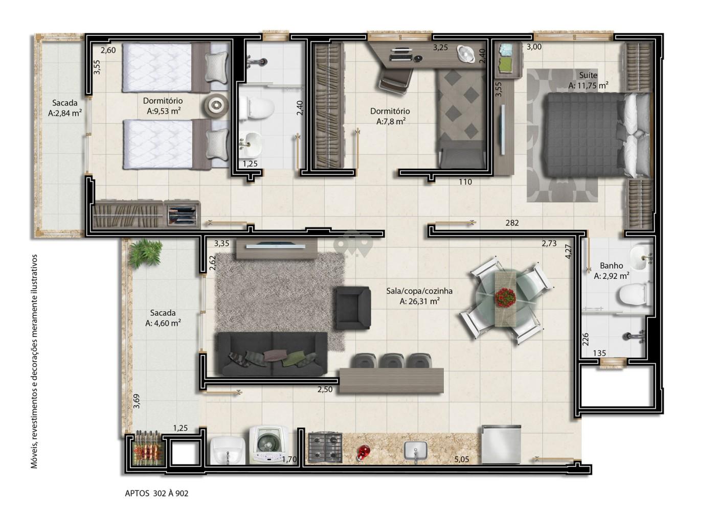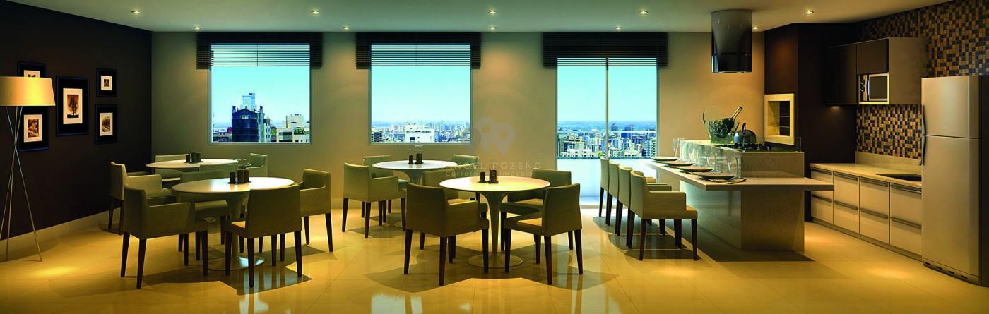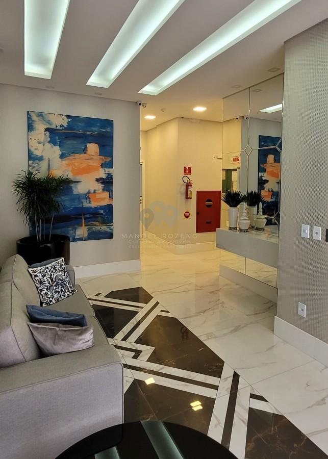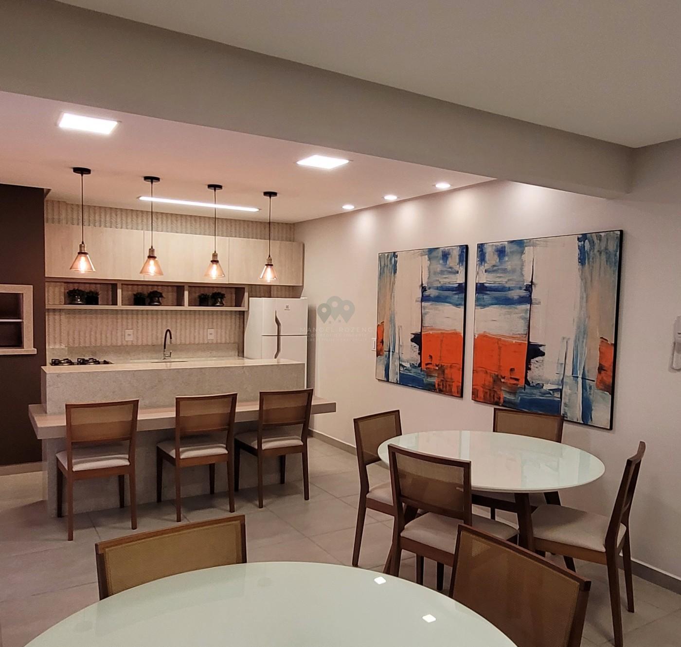 - Áreas Comuns: Hall de entrada mobiliado, - Áreas Privativas: Sacada com Churrasqueira, - Cômodos: Área de Serviço, - Infraestrutura: Garagem, Espaço Fitness, Salão de Festas, - Proximidades: Bares e Restaurantes, Escola, Farmácia, Supermercado,