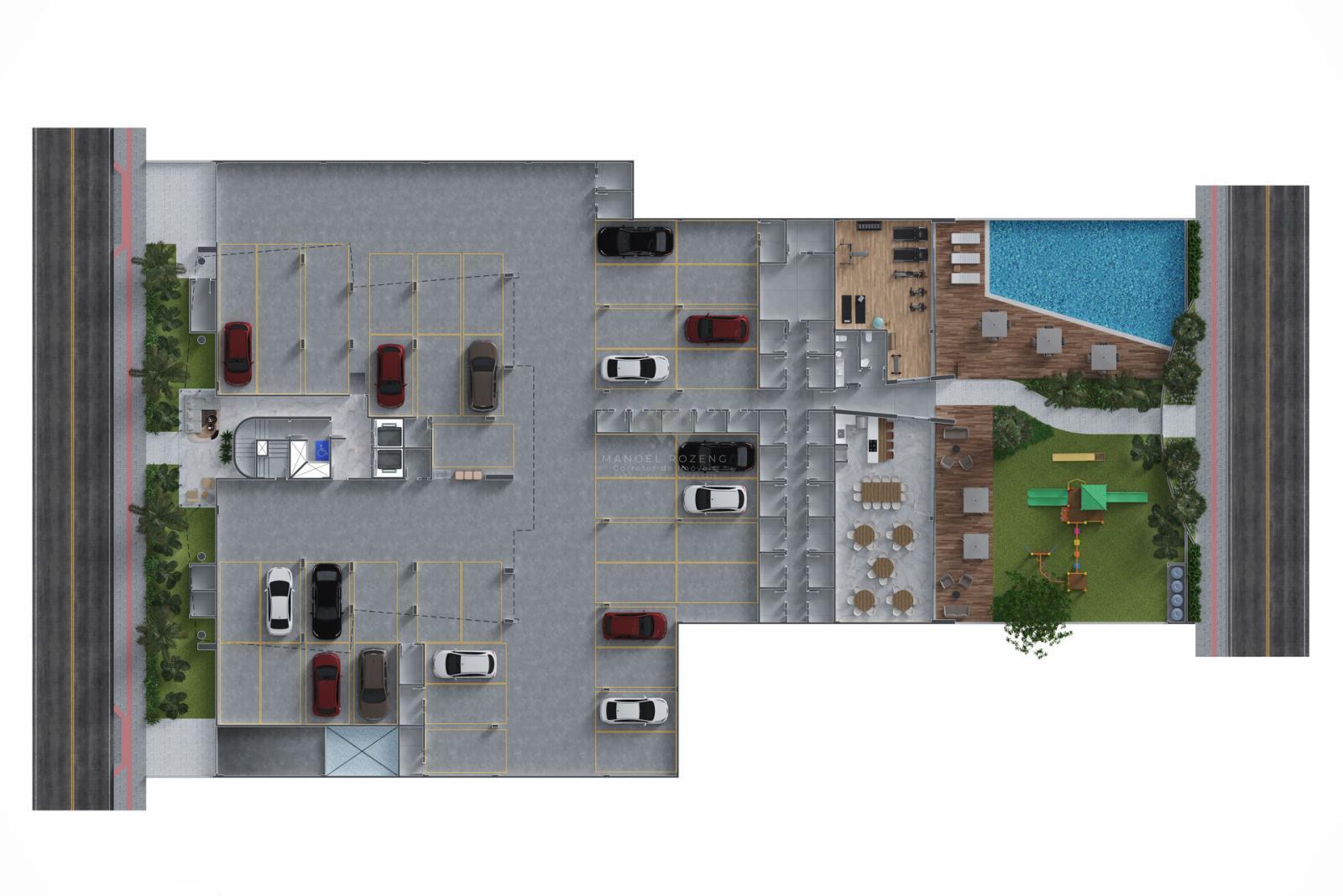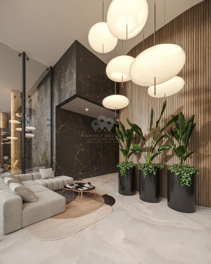 - : Espera para split, Living integrado, - Áreas Comuns: Hall de entrada mobiliado, - Características: Churrasqueira, Porcelanato Retificado, Monitoramento áreas comuns, Rebaixo em gesso, Fechadura Digital, - Cômodos: Área de Serviço, Cozinha, - Infraestrutura: Espaço Fitness, Playground, Salão de Festas, - Lazer: Deck molhado, Piscina com prainha, - Proximidades: Banco, Centro, Bares e Restaurantes, Supermercado,