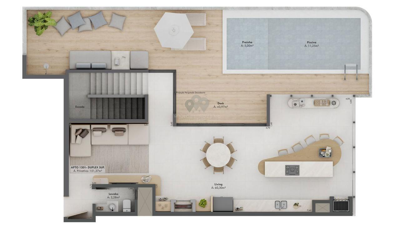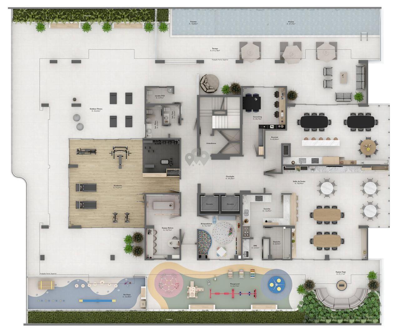 1 pavimento exclusivo de área de lazer
