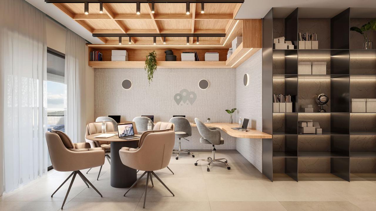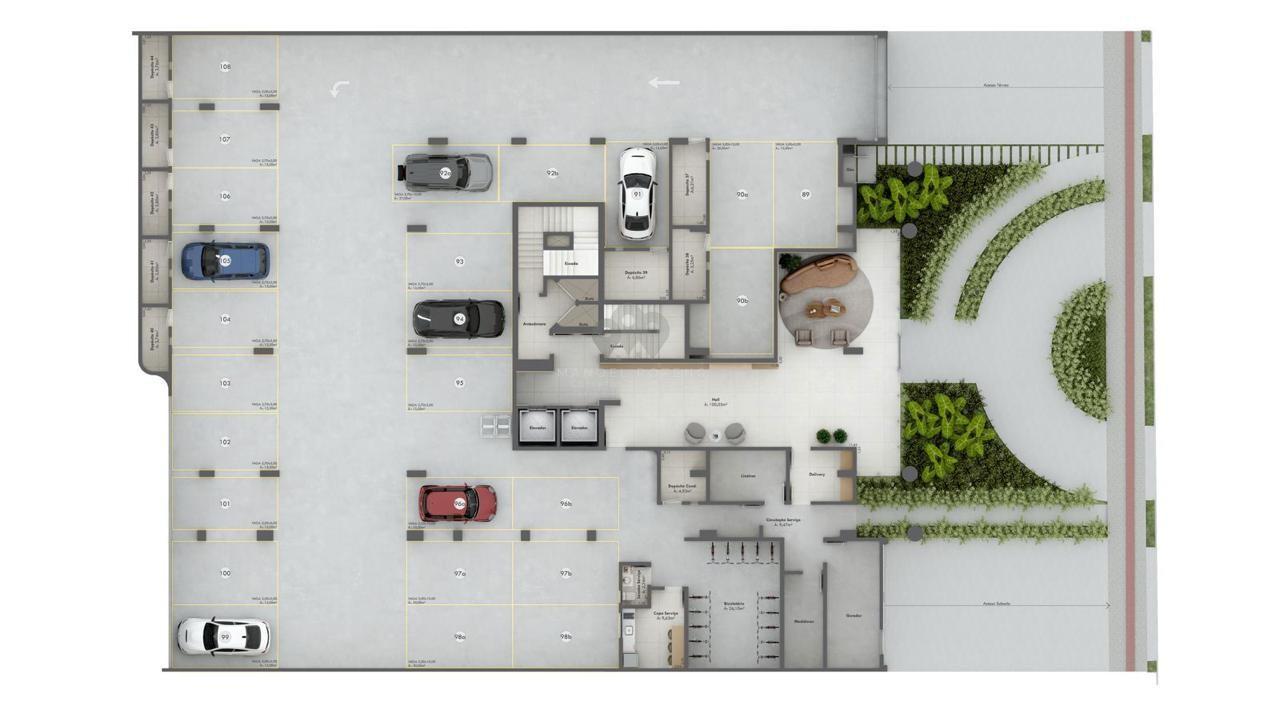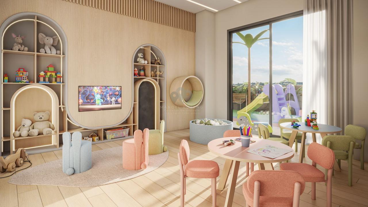 - : Espera para split, Living integrado, - Áreas Comuns: Hall de entrada mobiliado, - Características: Churrasqueira, Contrapiso com atenuante, Garage Hall, Porcelanato Retificado, Pré Inst. Aquecimento Gás e Água, Cabeamento estruturado, Depósito, Monitoramento áreas comuns, Persianas Automatizadas, Fechadura Digital, - Cômodos: Área de Serviço, Cozinha, - Infraestrutura: Aproveitamento água da chuva, Espaço Delivery, Gerador energia Fotovotaica, Máquina de gelo, 02 Elevadores, Brinquedoteca, Coworking, Espaço Fitness, Espaço Pet, Playground, Salão de Festas, - Lazer: Piscina, - Proximidades: Banco, Centro, Hospital, Posto de Combustível, Transporte Público, Igrejas, Praça, Universidade, Bares e Restaurantes, Escola, Farmácia, Shopping Center, Supermercado,