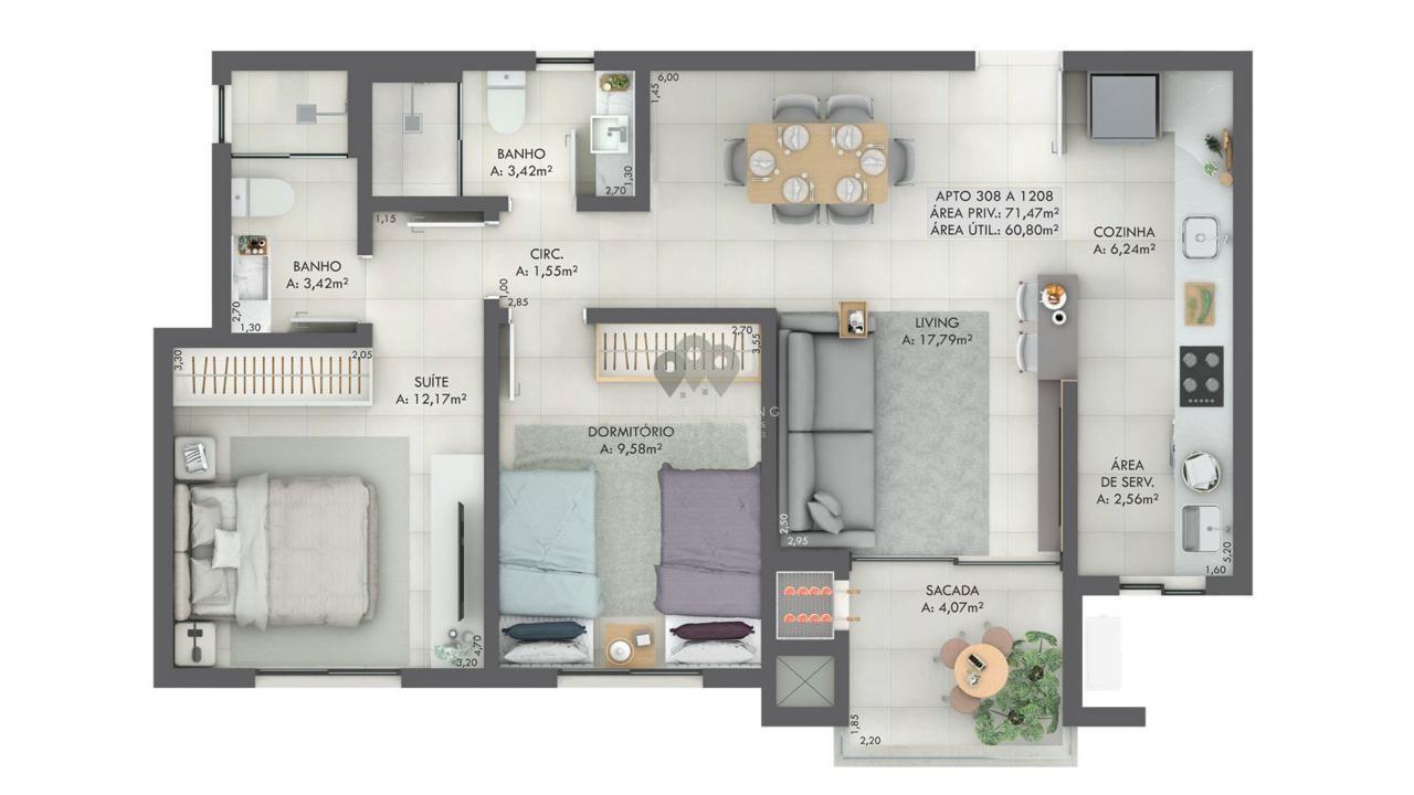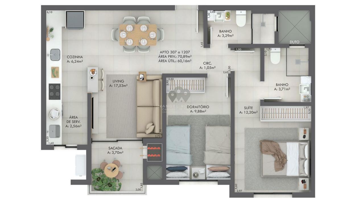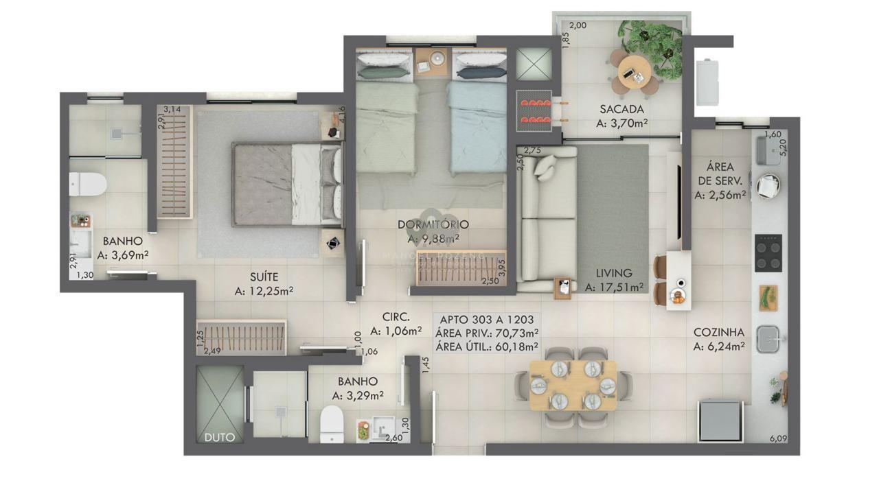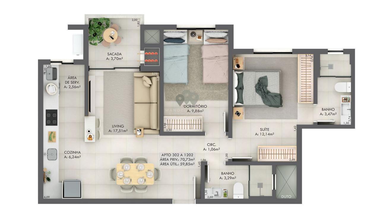 Gran Michel Residence Elegância e modernidade em um novo marco no bairro Michel.Localizado em uma das regiões mais valorizadas de Criciúma, o Gran Michel Residence combinaarquitetura contemporânea, tecnologia e conforto em um projeto pensado para elevar o seu estilo de vida.Com hall de entrada imponente e pé-direito duplo, o empreendimento oferece sofisticação desde oprimeiro olhar,aliando design, segurança e bem-estar em todos os ambientes. Apartamentos: 88 unidades, sendo 4 gardens exclusivos 8 apartamentos por andar em 15 pavimentos Áreas internas revestidas com porcelanato 90x90cm Cabeamento de internet em todos os dormitórios e living Contrapiso com atenuante de ruído entre apartamentos Paredes com maior espessura, garantindo mais privacidade Nicho nos banheiros Fechadura digital na porta de entrada Churrasqueira a carvão com exaustor elétrico e vedação dumper Esquadrias com persianas automatizadas nos quartos Pré-instalação para ar-condicionado Split e aquecedor de água a gás Acabamento em Gesso Infraestrutura e Lazer: Piscina no rooftop com pastilhas e iluminação Espaço Fitness Coworking Salão de festas Sala de reunião Playground Pet place Bike share Diferenciais do Empreendimento: Garage Hall Tomada compartilhada para automóveis elétricos Depósito individual para cada apartamento Controle de acesso com reconhecimento facial Espaço Delivery Monitoramento eletrônico nas áreas comuns Aproveitamento da água da chuva para limpeza Geração de energia fotovoltaica para uso do condomínio Pré-instalação para gerador de energia Endereço: Rua Senador Paulo Sarazate Bairro Michel, CriciúmaSC Entrega da obra: Junho2028 Incorporação: R.3-153.799 Informações e valores:Manoel Rozeng Corretor e Perito Avaliador de ImóveisCRECI 71615-F CNAI: 055413 (48) 99112-0526