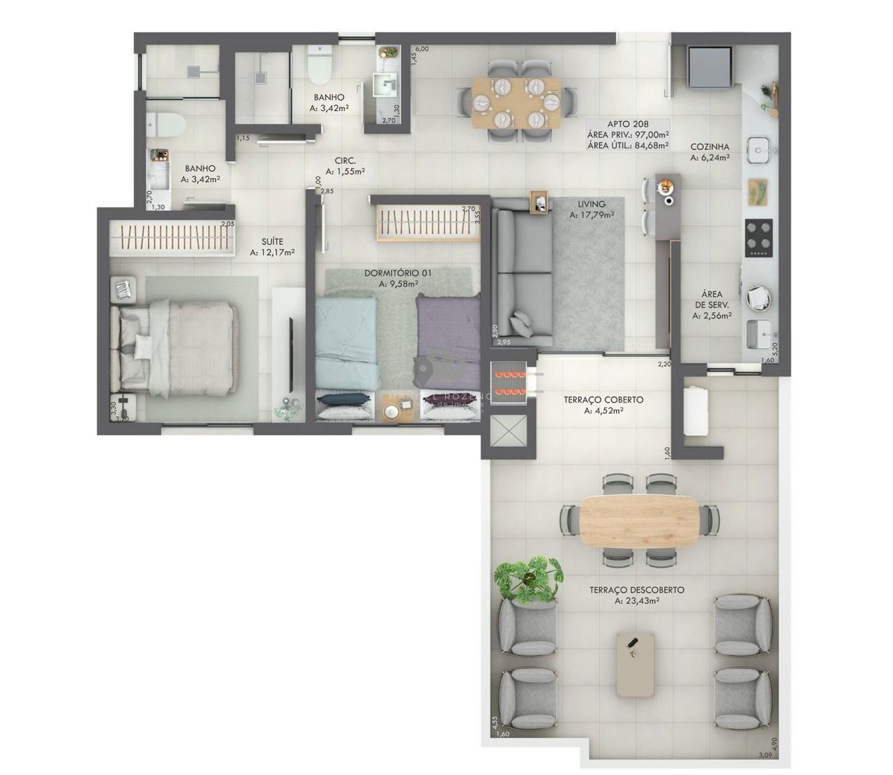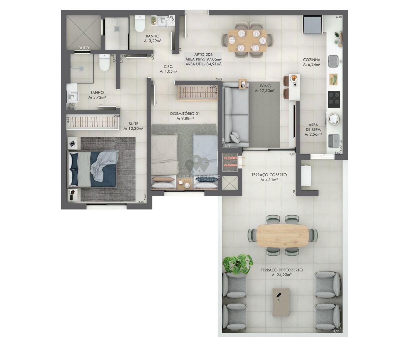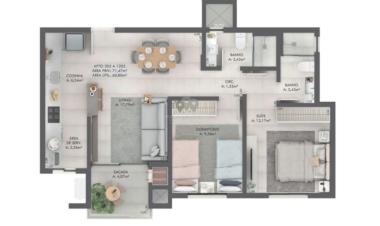Gran Michel Residence Elegância e modernidade em um novo marco no bairro Michel.Localizado em uma das regiões mais valorizadas de Criciúma, o Gran Michel Residence combinaarquitetura contemporânea, tecnologia e conforto em um projeto pensado para elevar o seu estilo de vida.Com hall de entrada imponente e pé-direito duplo, o empreendimento oferece sofisticação desde oprimeiro olhar,aliando design, segurança e bem-estar em todos os ambientes. Apartamentos: 88 unidades, sendo 4 gardens exclusivos 8 apartamentos por andar em 15 pavimentos Áreas internas revestidas com porcelanato 90x90cm Cabeamento de internet em todos os dormitórios e living Contrapiso com atenuante de ruído entre apartamentos Paredes com maior espessura, garantindo mais privacidade Nicho nos banheiros Fechadura digital na porta de entrada Churrasqueira a carvão com exaustor elétrico e vedação dumper Esquadrias com persianas automatizadas nos quartos Pré-instalação para ar-condicionado Split e aquecedor de água a gás Acabamento em Gesso Infraestrutura e Lazer: Piscina no rooftop com pastilhas e iluminação Espaço Fitness Coworking Salão de festas Sala de reunião Playground Pet place Bike share Diferenciais do Empreendimento: Garage Hall Tomada compartilhada para automóveis elétricos Depósito individual para cada apartamento Controle de acesso com reconhecimento facial Espaço Delivery Monitoramento eletrônico nas áreas comuns Aproveitamento da água da chuva para limpeza Geração de energia fotovoltaica para uso do condomínio Pré-instalação para gerador de energia Endereço: Rua Senador Paulo Sarazate Bairro Michel, CriciúmaSC Entrega da obra: Junho2028 Incorporação: R.3-153.799 Informações e valores:Manoel Rozeng Corretor e Perito Avaliador de ImóveisCRECI 71615-F CNAI: 055413 (48) 99112-0526