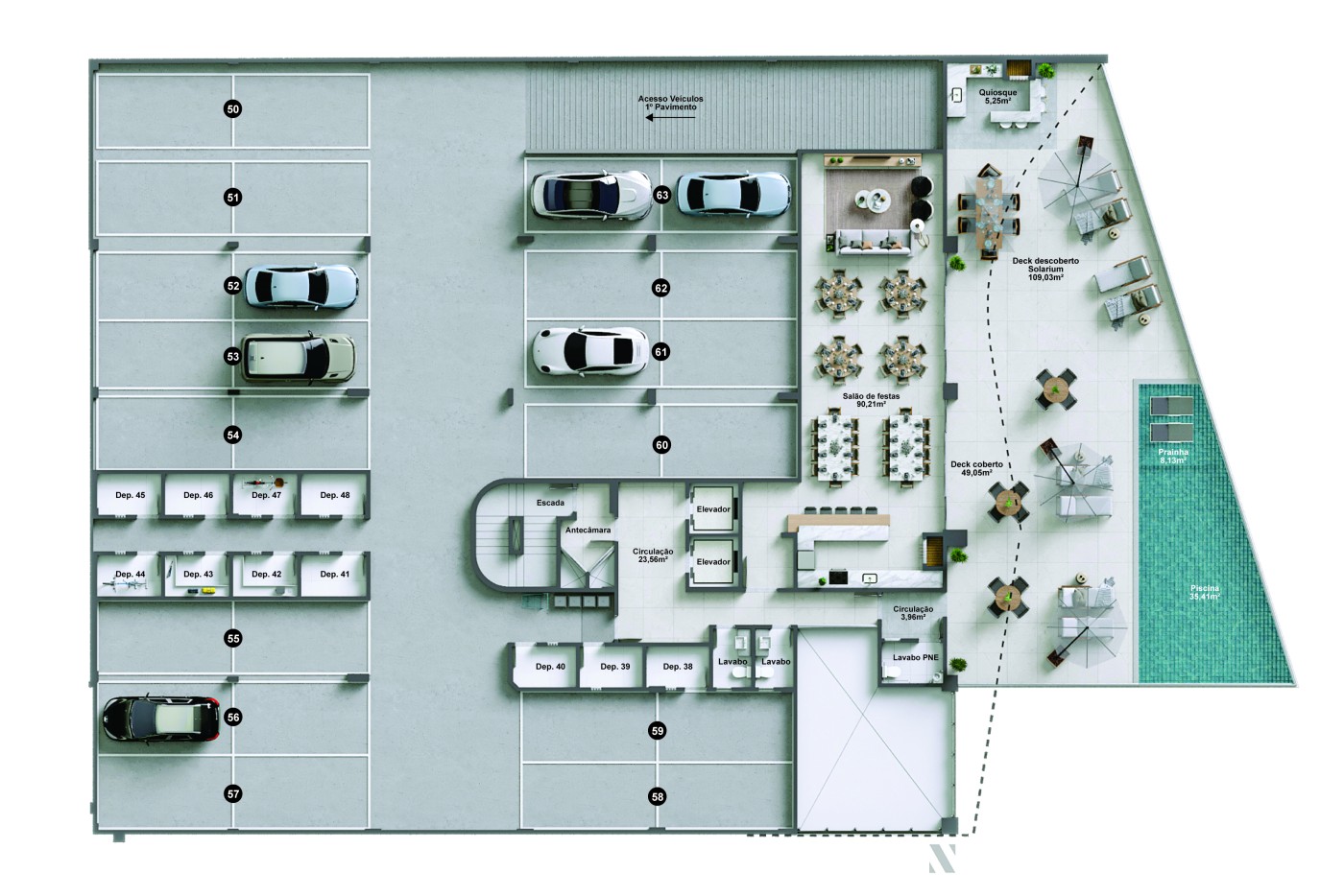 - : Espera para split, Living integrado, - Áreas Privativas: Sacada com Churrasqueira, - Características: Monitoramento áreas comuns, Persianas Automatizadas, Porcelanato Retificado 80x80cm, Rebaixo em gesso, Tubulação para Água Quente, Fechadura Digital, - Infraestrutura: Garagem, 02 Elevadores, Quiosque com Churrasqueira a Carvão, Salão de Festas, - Lazer: Piscina,