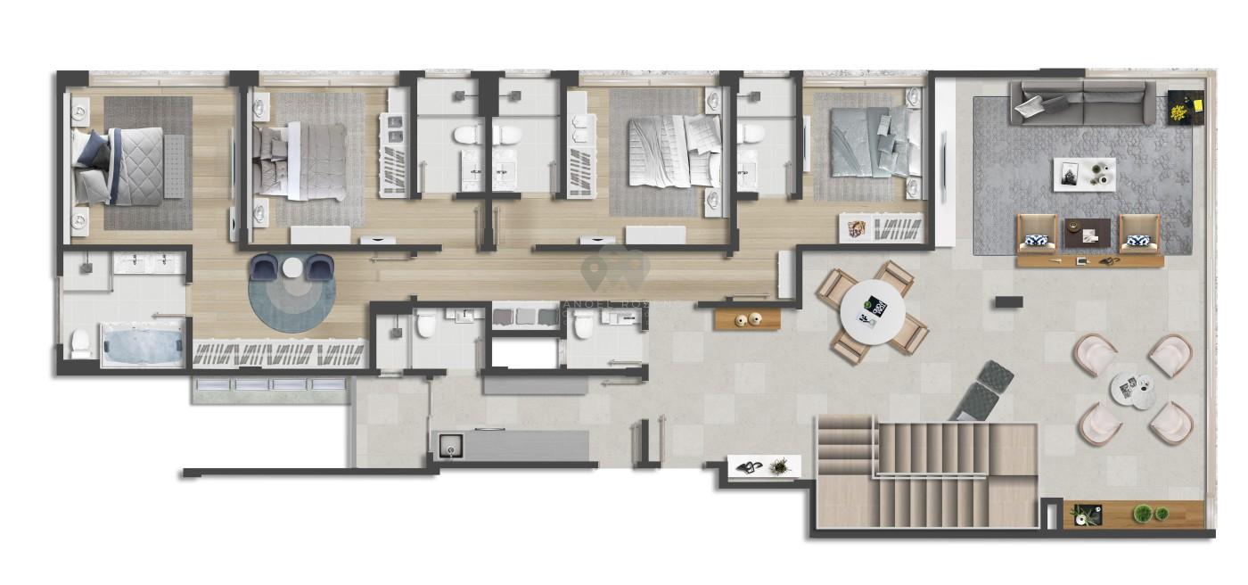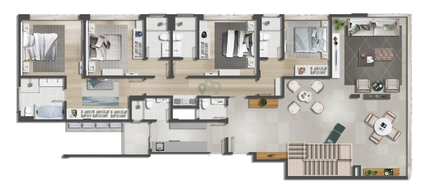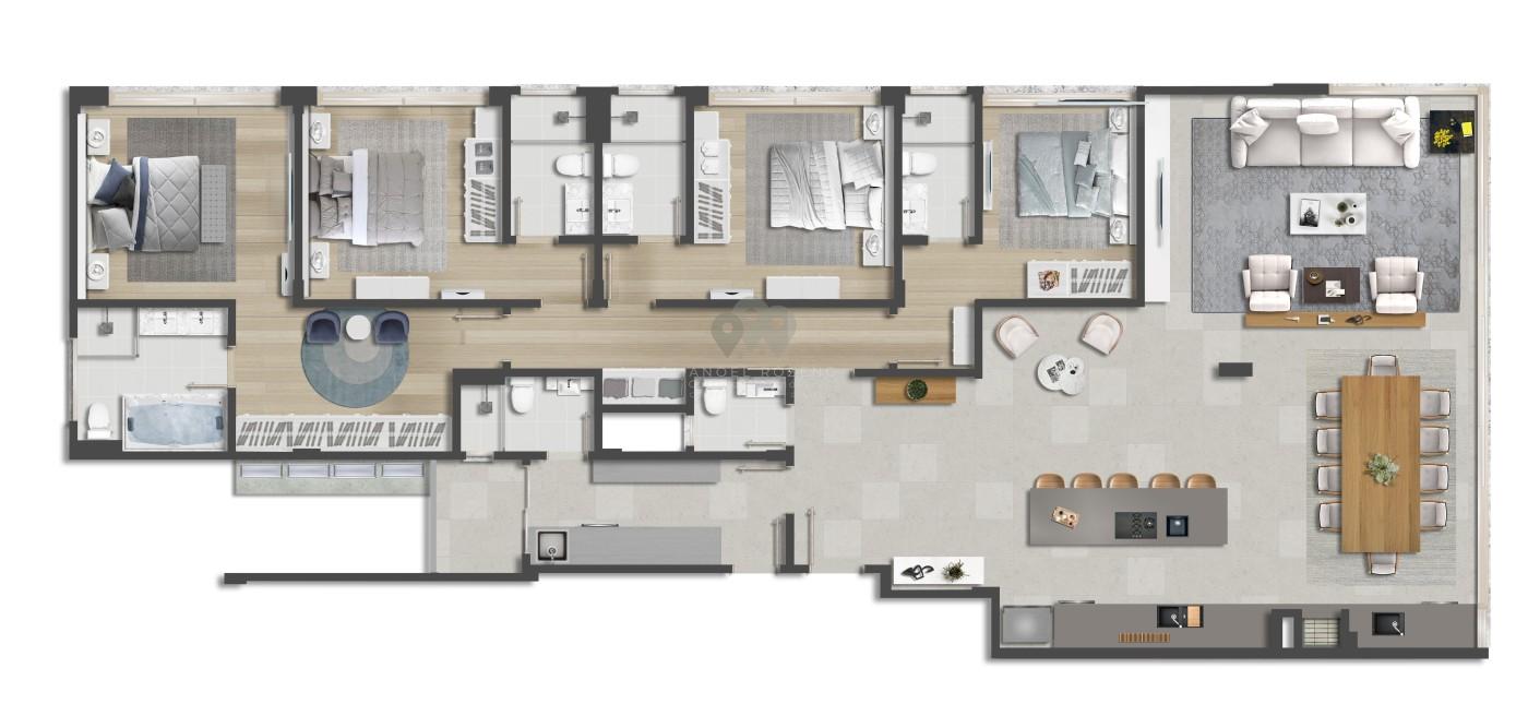 3 e 4 dormitórios, sendo 3 e 4 suítes