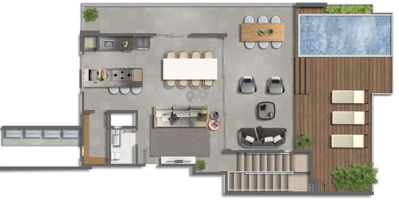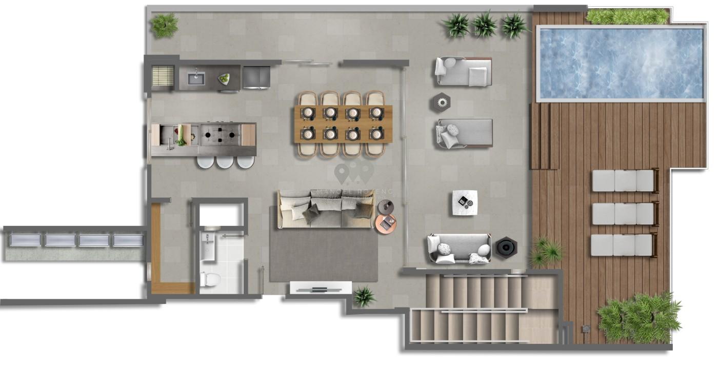 - : Espera para split, Living integrado, - Características: Churrasqueira, Garagem coberta, Monitoramento áreas comuns, Persianas Automatizadas, Rebaixo em gesso, Tubulação para Água Quente, Ampla Suíte, Fechadura Digital, - Infraestrutura: Lounge Família, Brinquedoteca, Espaço Fitness, Piscina Adulto e Infantil, Playground, Salão de Festas, - Lazer: Deck molhado, Piscina Aquecida, Quadra de Tênis,